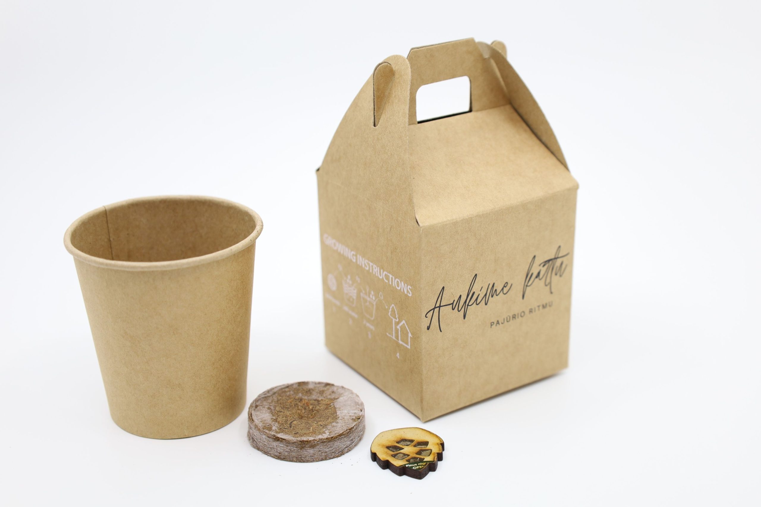 Pušies sėklos, durpės, vazonėlis “Aukime kartu Pajūrio ritmu”