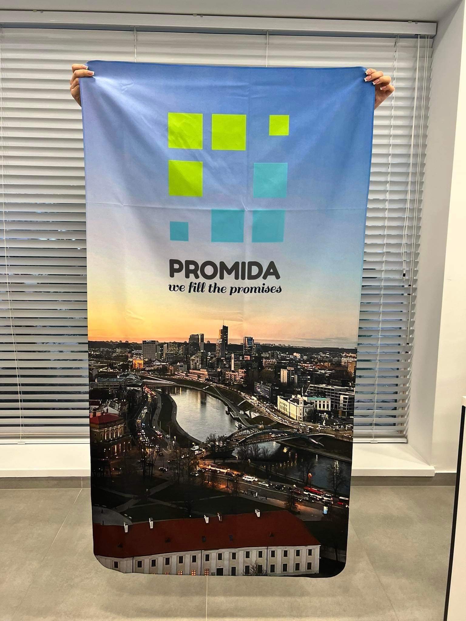 Norime jums pristatyti galimybę uždėti savo verslo logotipą ir/ar pageidaujamą nuotrauką ant mūsų mikropluošto rankšluosčių. Išskirtinė ir itin naudinga dovana jūsų klientams, partneriams ar darbuotojams. Tai itin kompaktiškas, lengvas ir plonas naujos kartos mikropluošto rankšluostis. Jį galės jūsų klientai ar darbuotojai neštis į treniruotes ar paimti kartu vykstant į keliones, bet kokio tipo išvykas, laisvalaikio pramogas. Ypač tinka, kai abejojate ar su savimi imti rankšluostį, nes paprastai jie užima daug vietos, o šitas rankšluostis yra lengvas, kompaktiškas, kelionių metu ar sportinėje kuprinėje neužima daug vietos, dėl savo ypatingos sudėties labai greitai sugeria ir išgarina drėgmė, o išdžiūvęs lieka minkštas ir švelnus bei malonus liesti. Minimalus užsakymo kiekis 50 vnt. Darome įvairių dydžių. Kaina derinama užsakymo metu. Terminas po pilno vizualo suderinimo iki 2 savaičių.